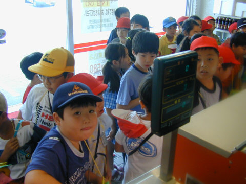 平成12年9月19日火曜日 わが東部小3年のみんながお店の見学に来てくれた。引率の伊藤先生はじめたくさんの子供達でお店に入りきれなかったけれど、みんなまじめにしつもんしてくれたよ。一番高い肉はどれですかとか、1日何人お客さんが来てくれるのかとか、鋭い質問にたじたじの暇な肉屋でした(~_~;)